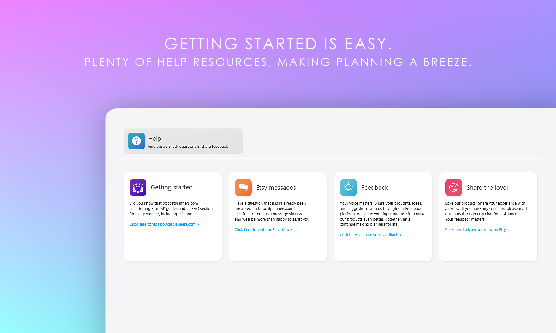 Contact us via the Bobcat Planners Etsy shop any time!