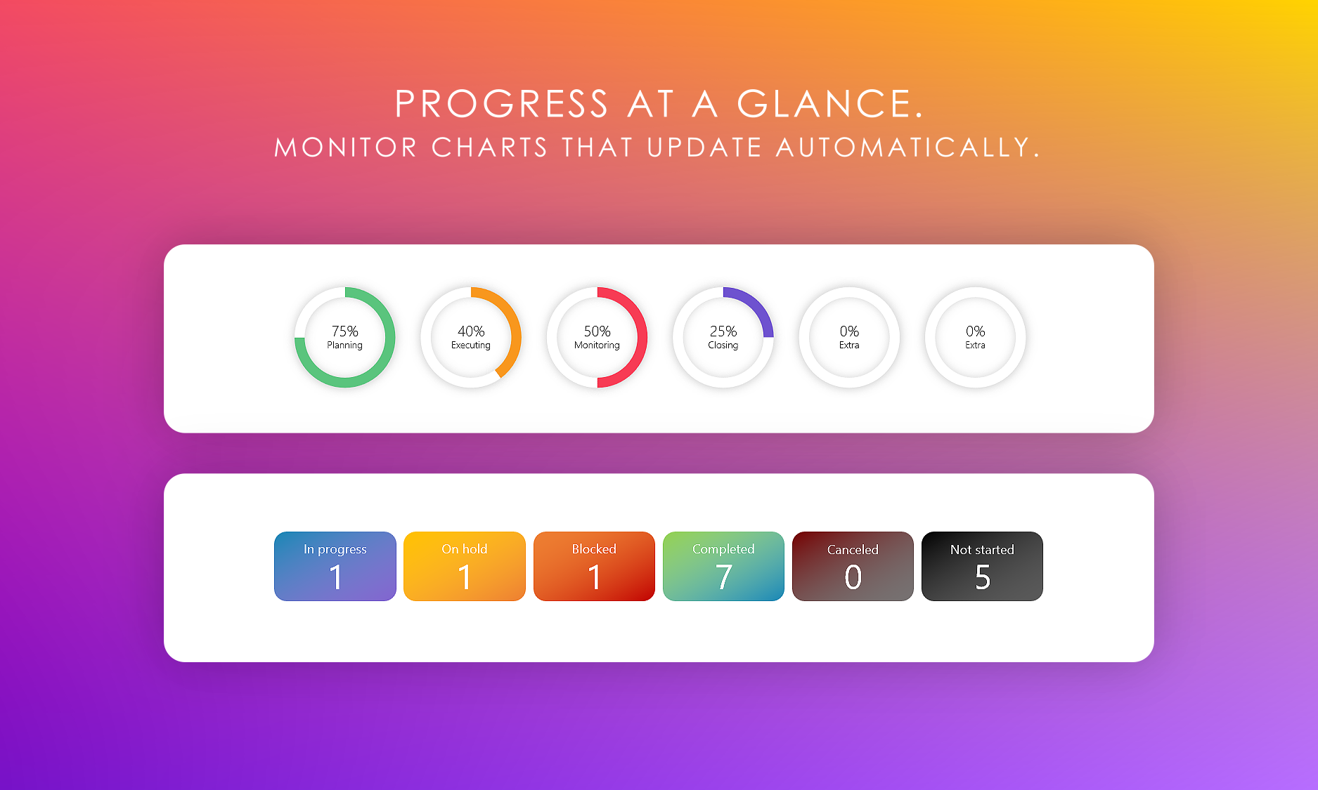 ✔️Ability to specify Progress percentage for each task - Percentage value color changes automatically (Example: 100% = Green)