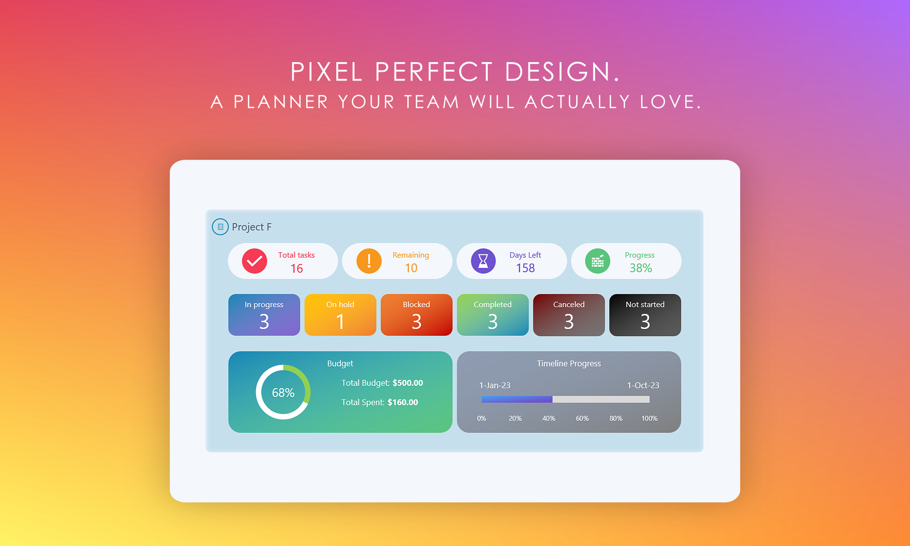 - Description: Plan & organize multiple projects in one easy to use excel spreadsheet. Designed to be intuitive and empower you and your team to stay on top of your projects. Assign tasks to your employees or team member, prioritize tasks and keep their statuses up to date. Set due dates, budgets & percentage of completion. See your project stats at a glance with the beautiful Dashboard sheet, which is completely automated. You'll be sure to impress your team (and your boss) with this high quality planner.