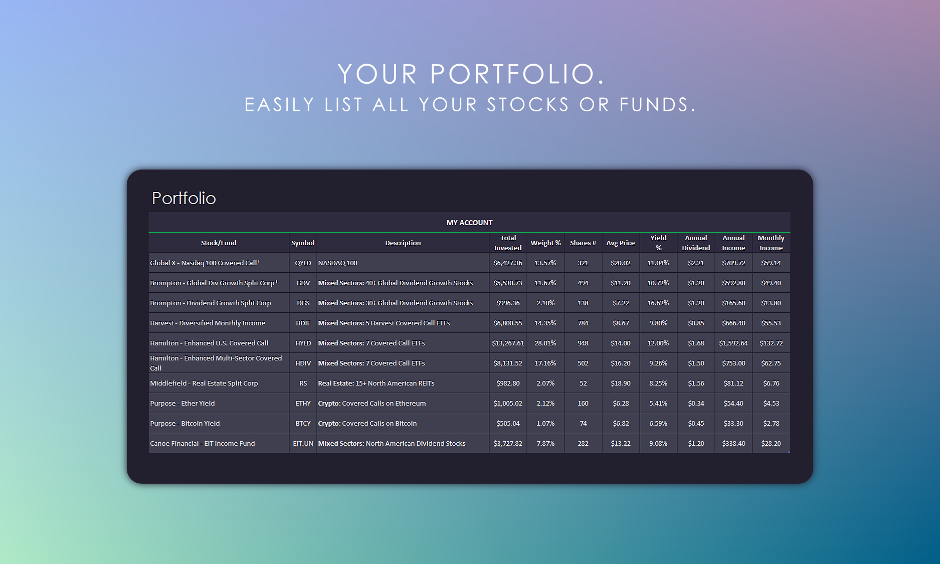 ✔️See how much each Stock / Fund is expected to pay you each month & year