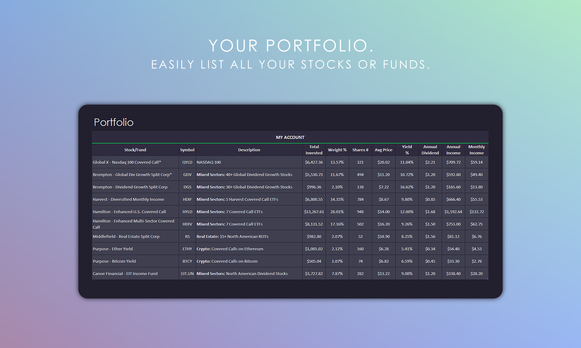 ✔️See how much each Stock / Fund is expected to pay you each month & year