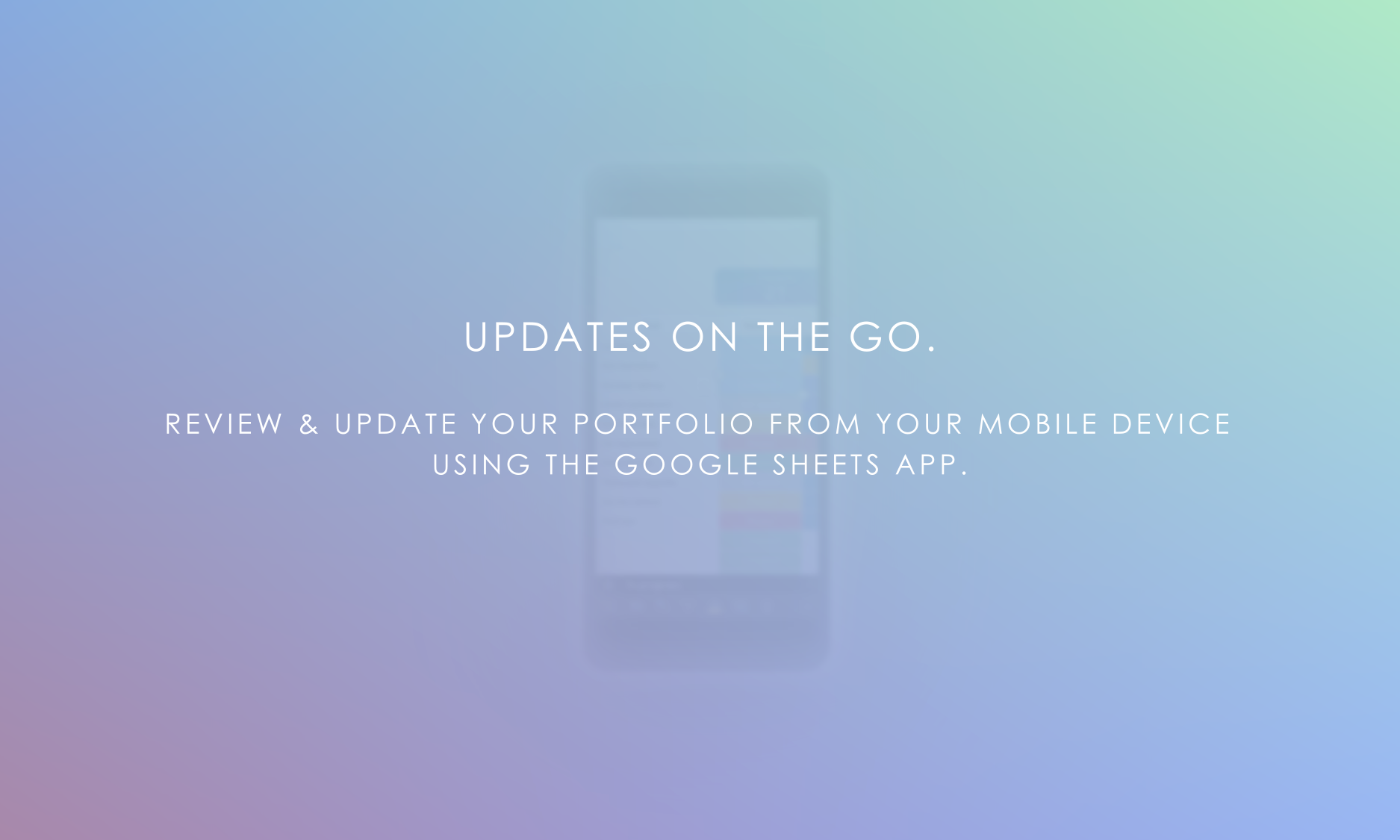 Once you have filled out the Portfolio & Tracker sheets, the Overview sheet will give you a clean, birds eye view of your Portfolio's status.