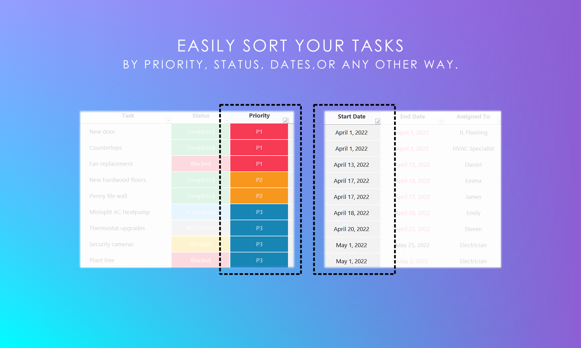 - People: List all the people who will be involved in this project. You may also list business names or trades. Example: James, Emily, Electrician, Bob’s Tile Shop