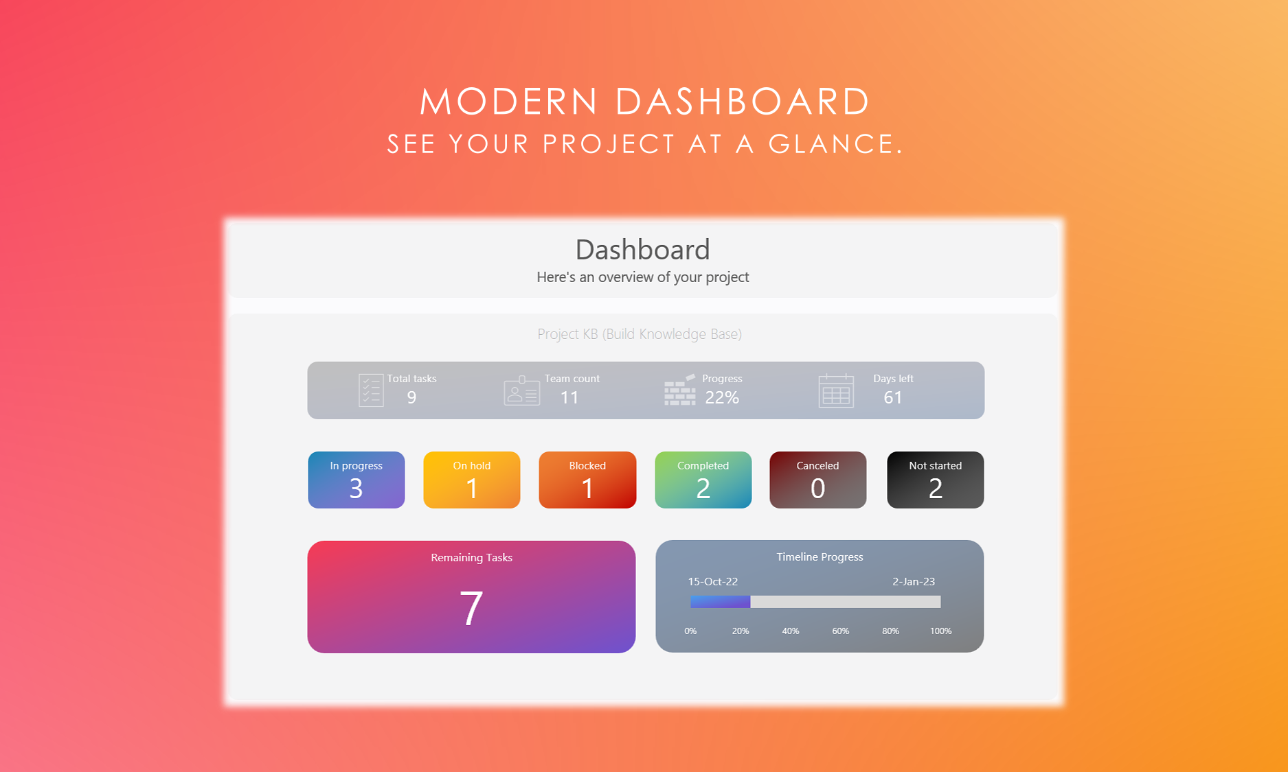 ✔️Modern, colorful dashboard sheet displays useful information about your project