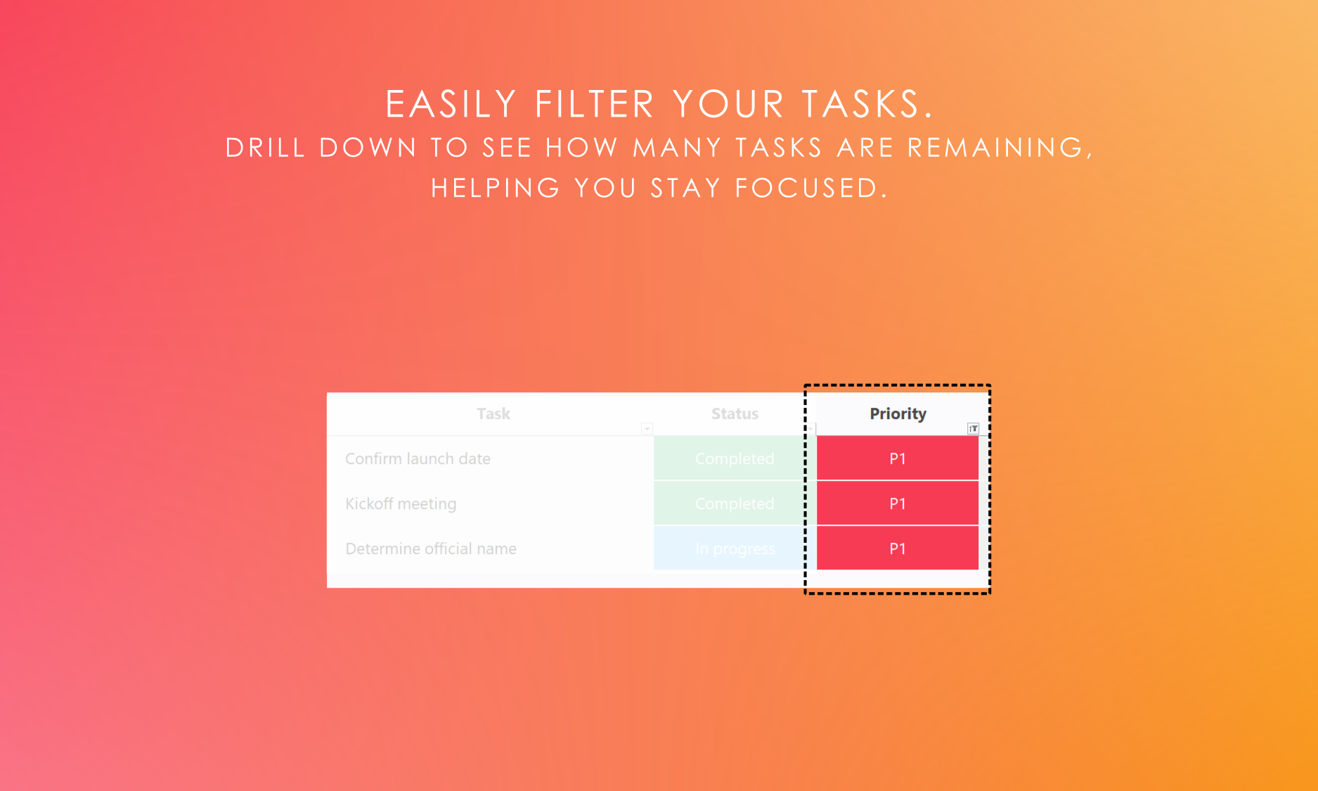 Can I filter my tasks so that I only see those for a specific status, or priority?