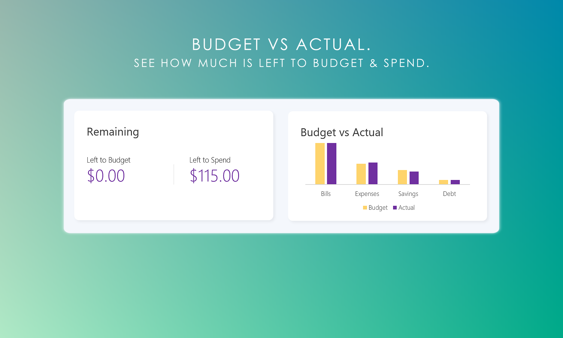 Enter the budget amount for each (How much you expect to put towards Savings or paying down your debt). Then, enter the actual amount as the month progresses.