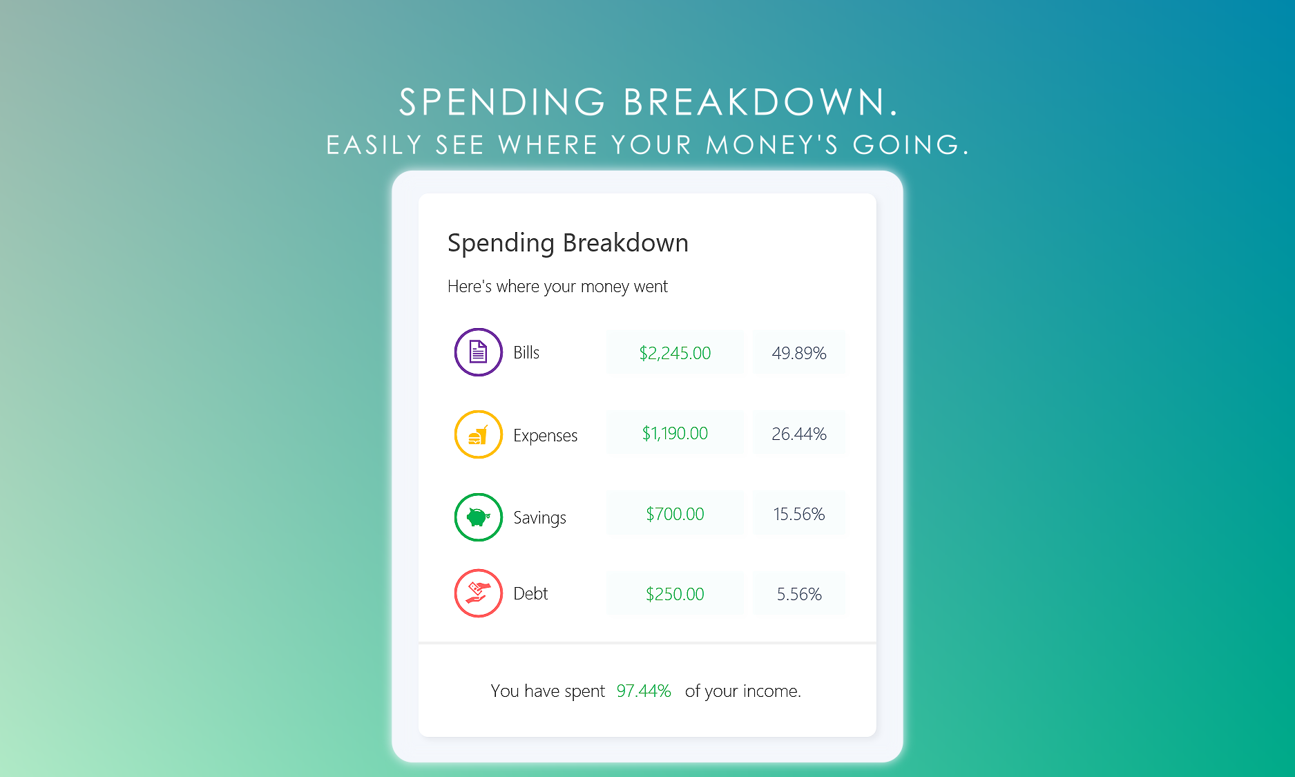 The Spending Breakdown tile shows you how much you've actually spent in each category in both currency & percentage format.
