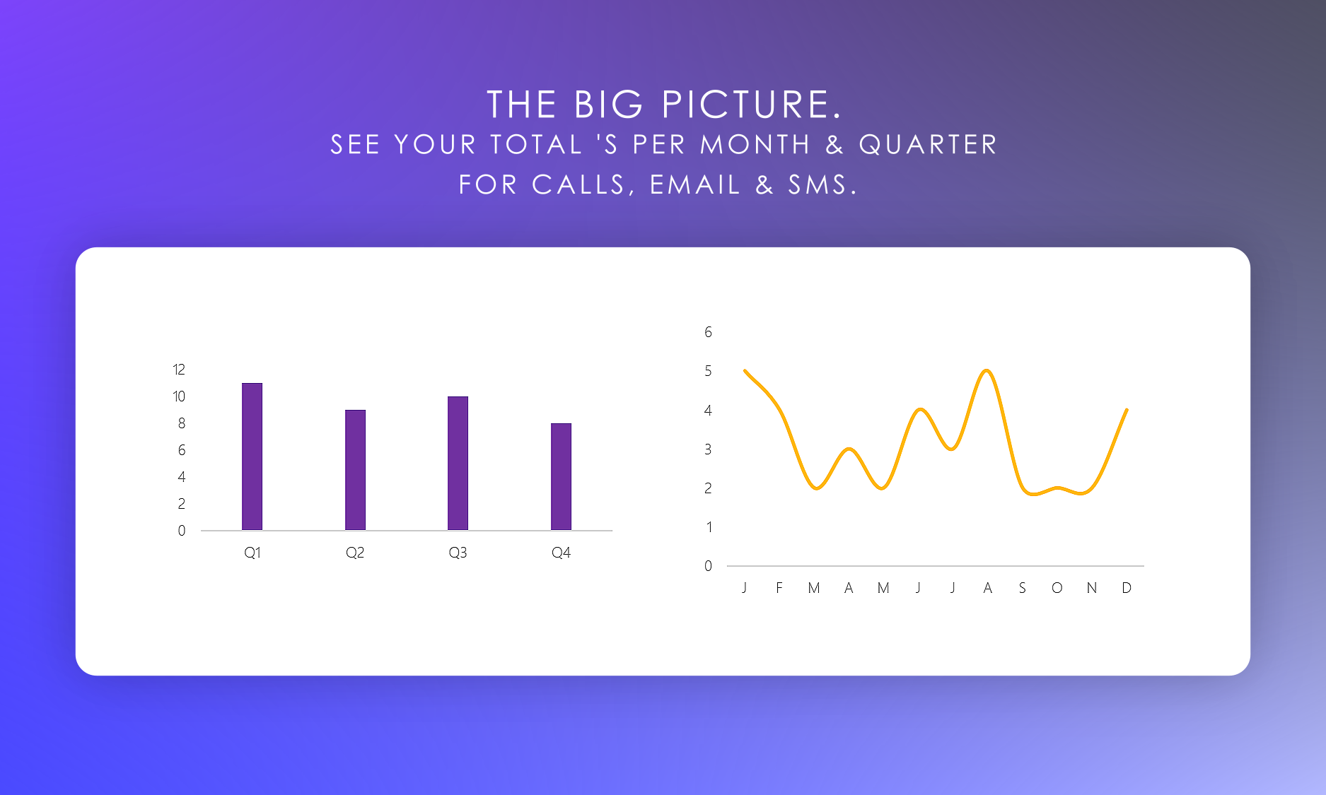 - Calls,Emails,SMS Made/Sent: See the total amount of Calls, Emails and SMS messages for the given timeframe.