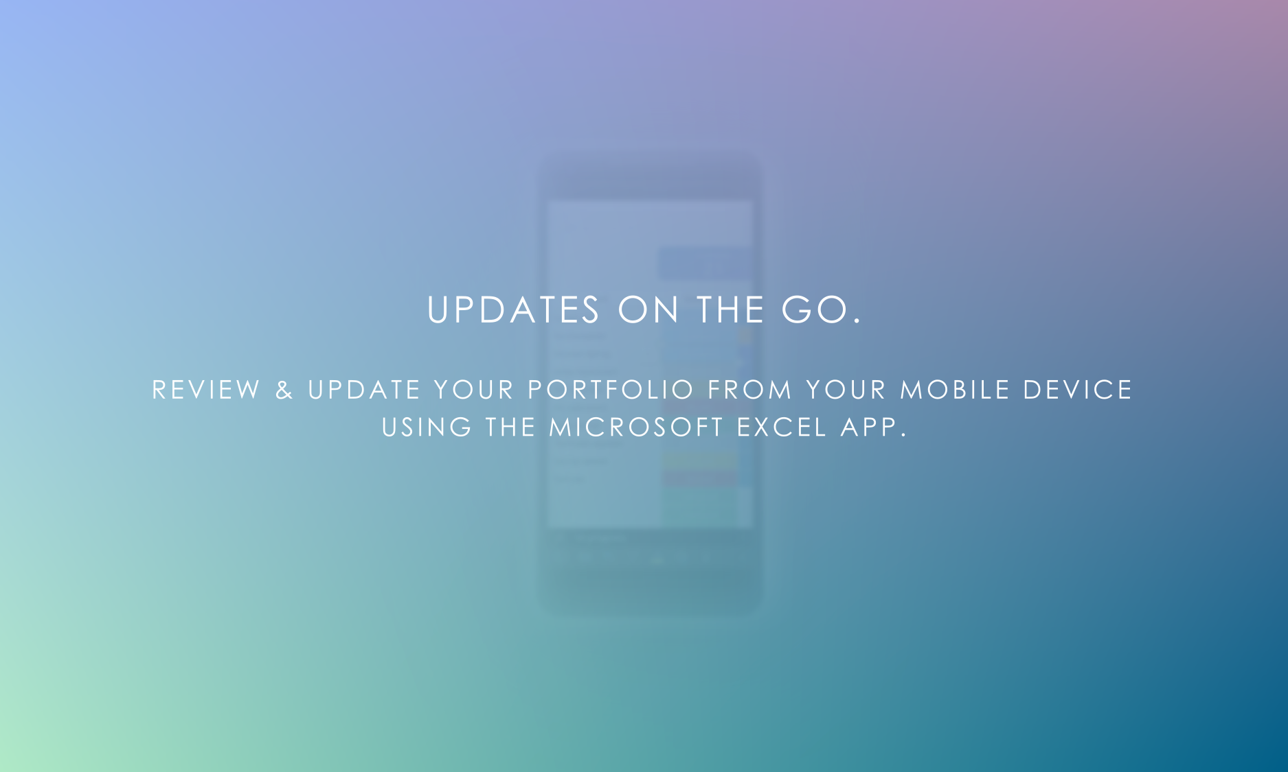 Once you have filled out the Portfolio & Tracker sheets, the Overview sheet will give you a clean, birds eye view of your Portfolio's status.