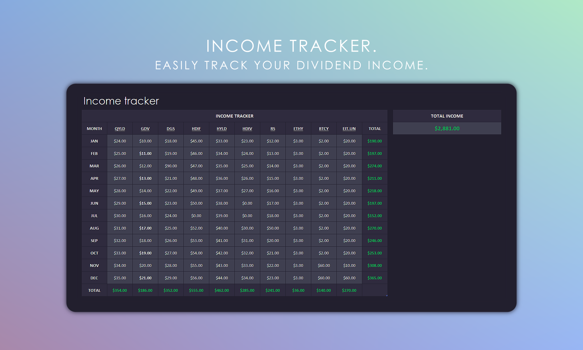 ✔️Income Tracker sheet let's you log your dividend and automatically updates the dashboard