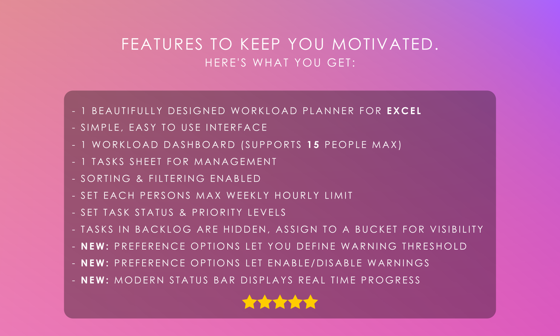 - Description: Introducing Workload Planner for Excel - a revolutionary tool that allows you to visualize your teams weekly workload with ease.